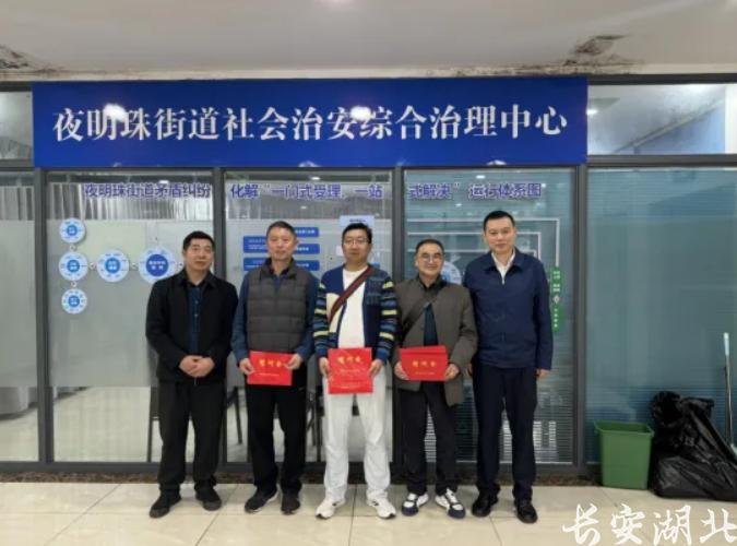 4月7日,宜昌市委政法委常务副书记文君、市见义勇为促进会副会长高虎一行到夜明珠街道,看望慰问荣登中央政法委2026年第一季度见义勇为勇士榜的曾庆顺、王祖清、马喆峰三位勇士,转达党和政府的深切关怀与崇高敬意,并送上慰问金。西陵区、夜明珠街道相关负责同志参加慰问。
