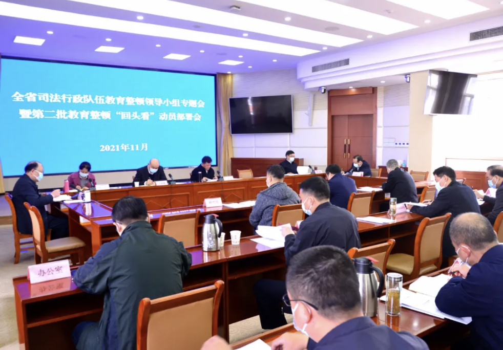 11月19日,省司法厅召开全省第二批司法行政队伍教育整顿“回头看”动员部署会,传达学习了全省政法队伍教育整顿领导小组专题会议暨第二批政法队伍教育整顿“回头看”工作部署会议精神,对全省第二批司法行政队伍教育整顿“回头看”进行动员部署。