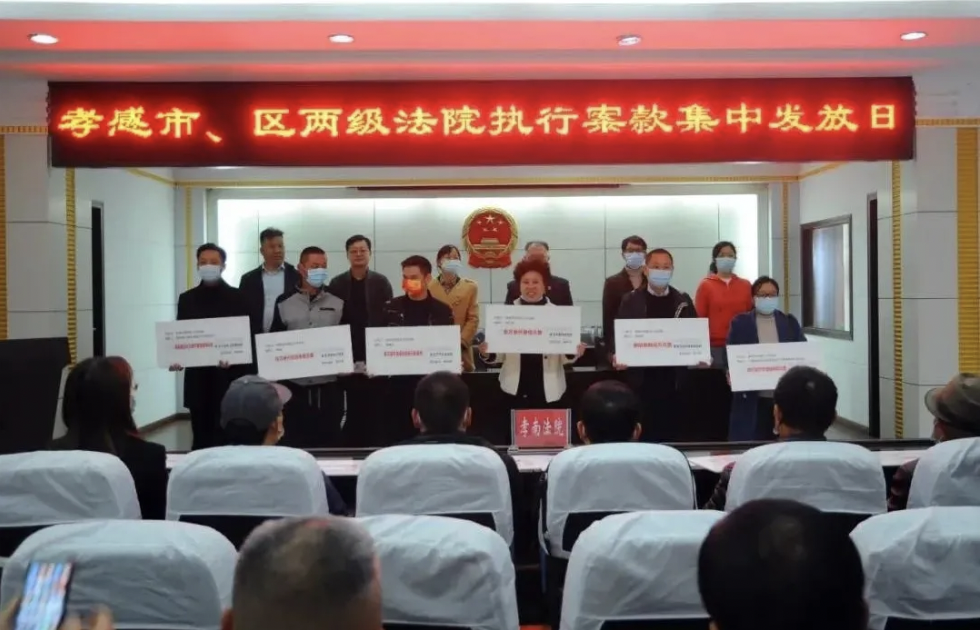 11月18日是最高人民法院确定的全国法院执行案款集中发放日,当天上午,孝感市、区两级法院在孝南区人民法院设立分会场,开展法院执行案款集中发放活动,为12件案件的申请执行人发放执行案款。
