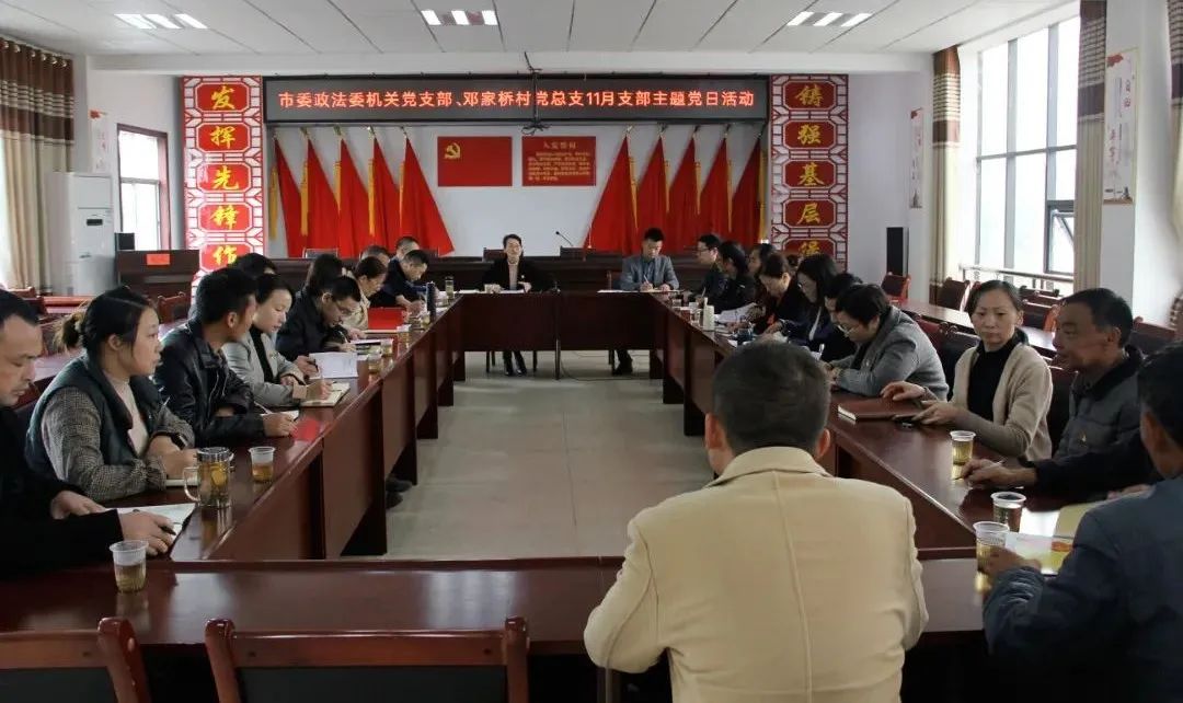 11月17日下午,宜都市委政法委机关党支部与邓家桥村党总支联合开展“学习贯彻党的十九届六中全会精神”主题党日活动,委机关党员、邓家桥村党员共30人参加。