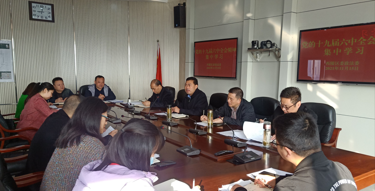 11月15日,西陵区委政法委开展专题学习,集中传达学习党的十九届六中全会精神,学习《中国共产党第十九届中央委员会第六次全体会议公报》。区委常委、政法委书记周成刚主持会议,全体干部职工到场参会。