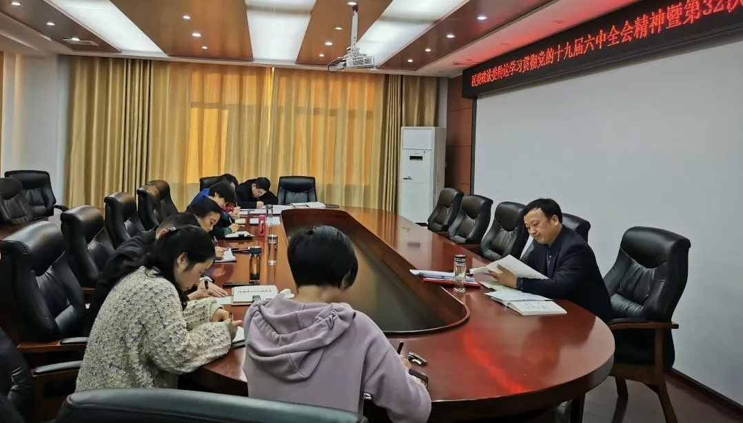 11月18日,点军区委政法委组织全体机关干部开展集中学习,传达学习贯彻党的十九届六中全会精神。区委政法委常务副书记祁明领学《中共中央关于党的百年奋斗重大成就和历史经验的决议》,部分干部职工就学习进行了交流发言。