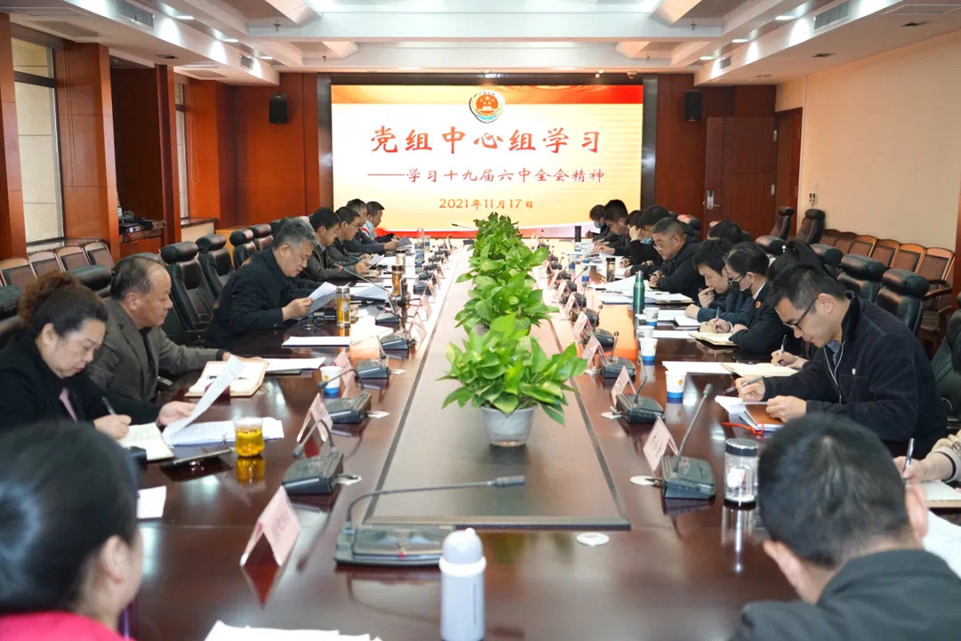 18日,市委副书记、市委政法委书记杨军主持召开市委政法委理论学习中心组(扩大)会议,专题学习贯彻党的十九届六中全会精神。
