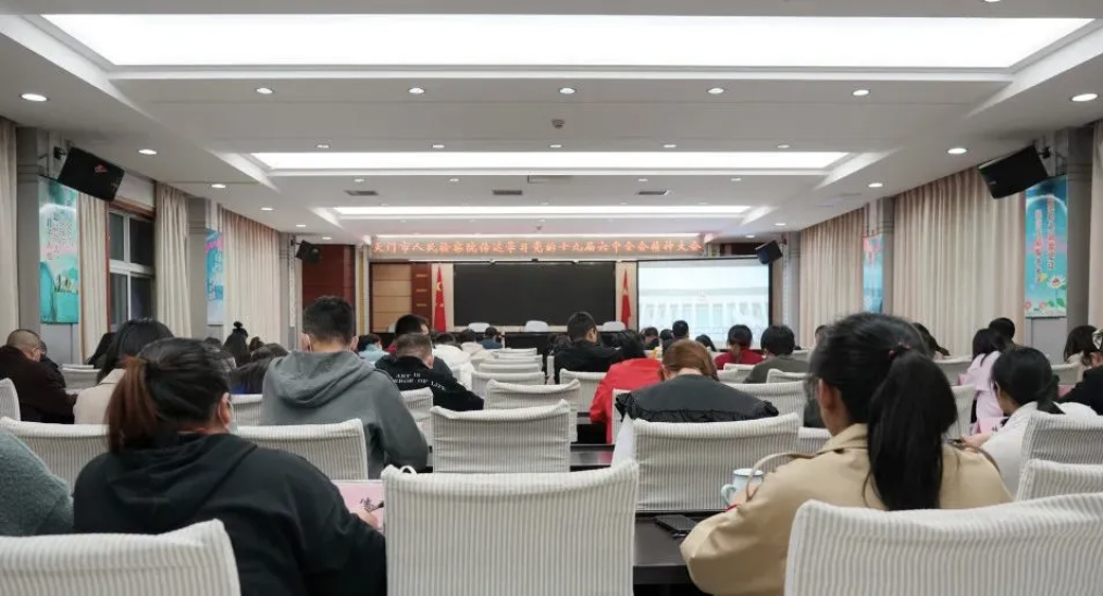 11月18日晚,天门市检察院召开全院干警大会,以观看视频的方式学习了《中国共产党第十九届六中全会公报》内容,四名2021年新入职公务员和现场抽取的两名干警围绕学习党的十九届六中全会精神,分享了自己的工作感悟和心得体会。天门市检察院将认真学习贯彻党的十九届六中全会精神,切实做到把学习成果转化为攻坚克难、干事创业的实际成效,全力推动检察工作争先进位。(来源:仙桃检察、潜江检察、天门检察)
