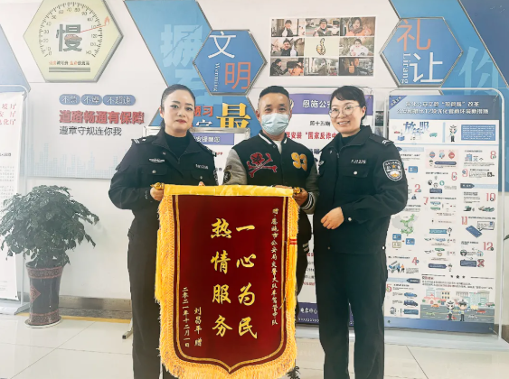 12月1日,市民刘先生将一面印有“一心为民,热心服务”的锦旗送到恩施市公安局交警大队车驾管中队,感谢该中队民警热情解决了他名下车辆与外省一车辆流水号同号而导致车辆无法年检的问题。