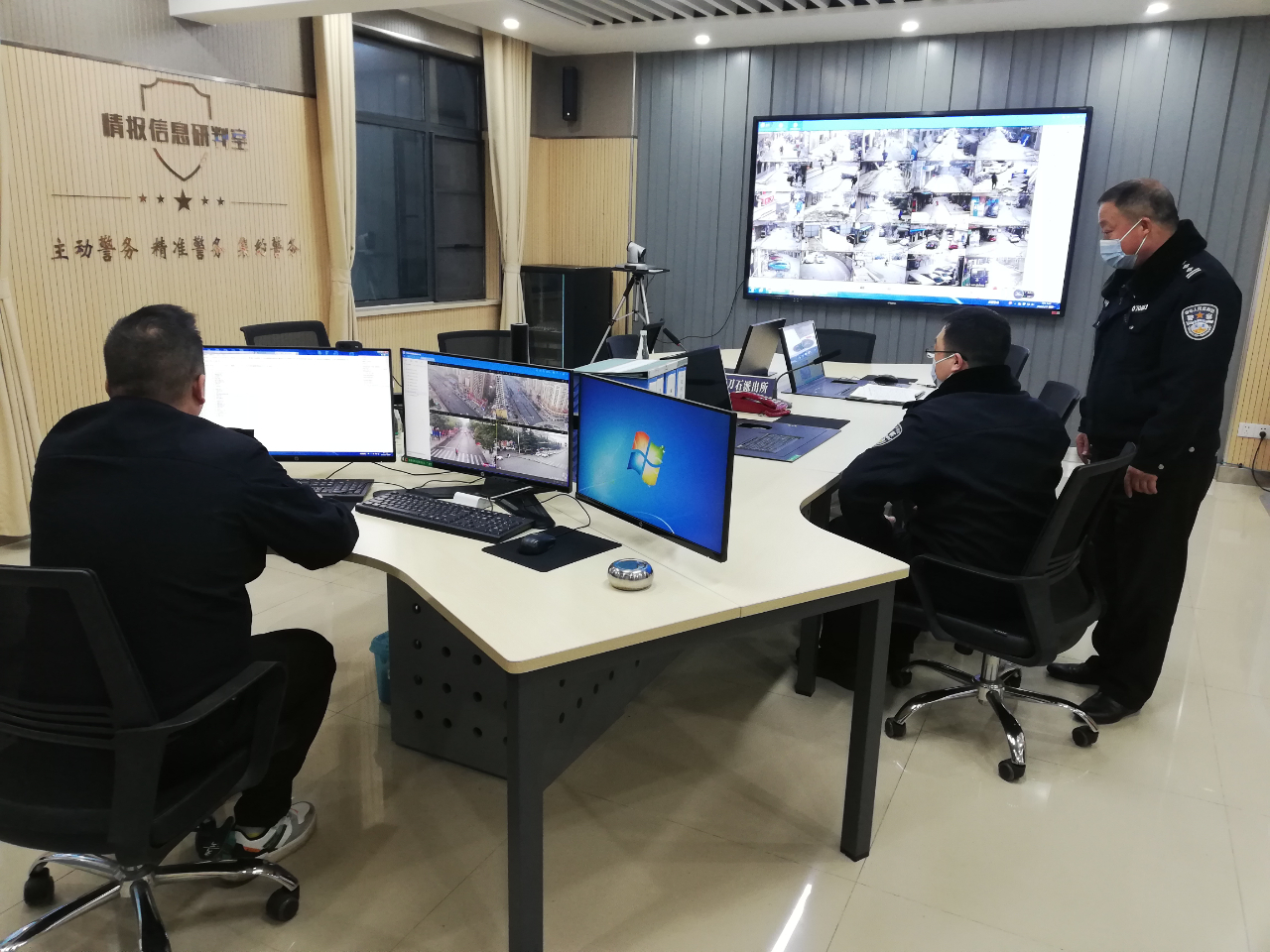 荆门掇刀石派出所结合辖区治安形势、派出所警力状况、辖区人口特点等因素,将原有的综合办公室提档升级为研判指挥室,进一步优化警力配置,调配一名有着20年刑侦工作经验的民警牵头负责,并选优配齐6名辅警专司警情分析、案件串并、信息研判、视频巡查等工作,形成“一室牵动两队,两队反哺一室”工作格局。
