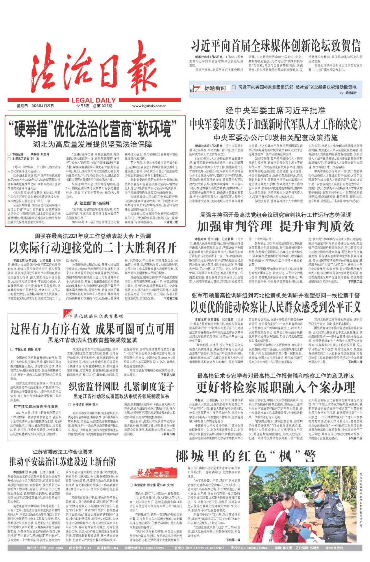 2022年1月27日《法治日报》 第01版 要闻