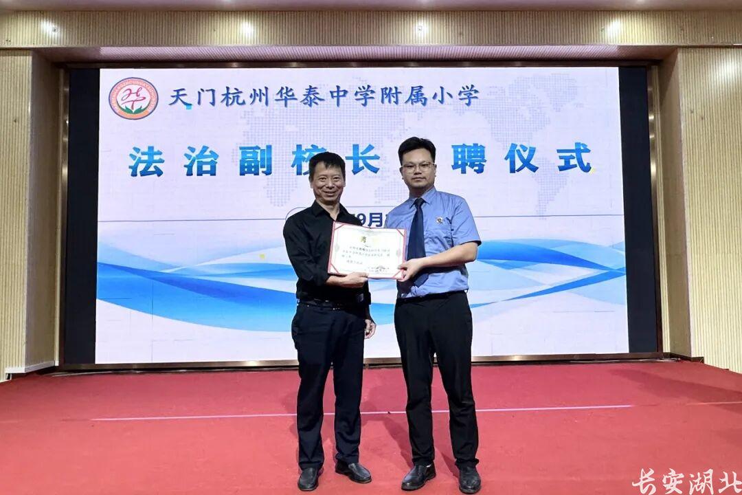 近日,市检察院刑事执行检察部负责人熊楷从华泰小学常务副校长黄文军手中接过聘书,以法治副校长的身份走上讲台,通过“案例+讲解+互动+情景”的模式,用通俗易懂的语言,让防范校园欺凌和性侵害的法治知识种子在新入学的一年级小朋友们心中悄然萌芽。