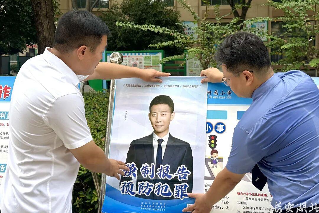 随后,检察官熊楷向华泰小学政教处安全主任熊志祥宣传介绍未成年人强制报告制度,发放张贴强制报告宣传海报和资料,呼吁学校、老师与检察机关携手,共同将“强制报告制度”落实落细,切实筑牢校园“平安网”。