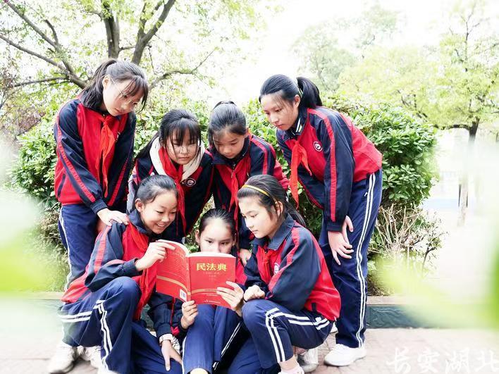 荆门市沙洋县高阳小学学生学习民法典知识。
