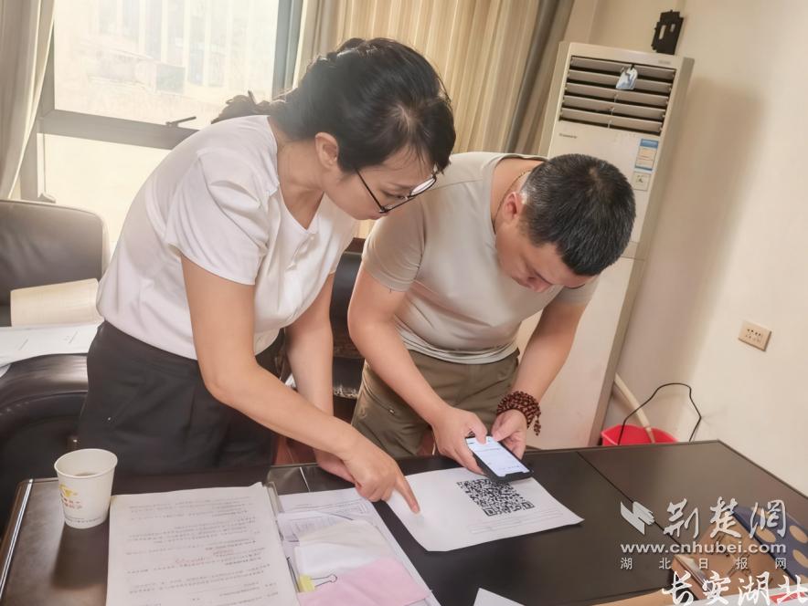 法律援助律师吴和琼到国泰物业管理公司指导企业扫码使用“利企通”小程序。通讯员供图