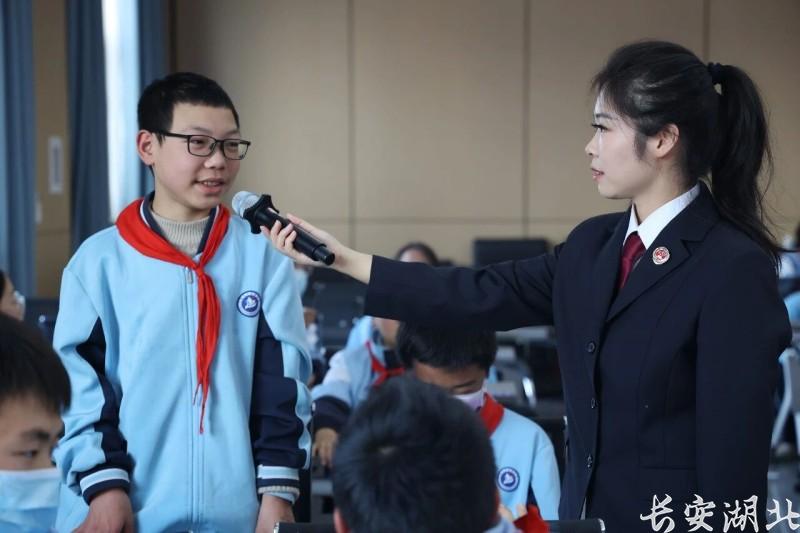 设在茅箭区检察院里的青少年法治教育基地,成了学校的“热门打卡点”。小学生在这里通过漫画和角色扮演,搞懂什么是“校园欺凌”;初中生在模拟法庭上,唇枪舌剑体验司法公正;高中生则在思辨沙龙里,围绕真实案例激辩法与情。走出去的“法治副校长”们,更是准备了“普法菜单”:开学季是“反诈第一课”,毕业季是“远离帮信罪”,暑假前是“防溺水安全课”,精准投喂,干货满满。