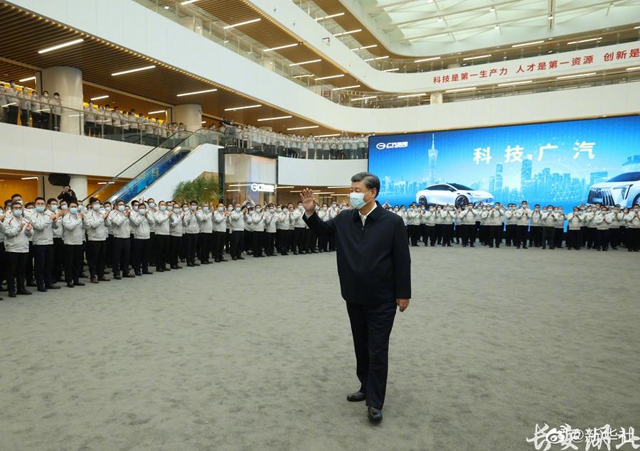 12日,习近平总书记在广东省广州市先后考察了乐金显示广州制造基地、广汽埃安新能源汽车股份有限公司,了解当地推进高水平对外开放、推动制造业高质量发展,以及企业推进科技创新、打造自主品牌等情况,并同企业代表、科研人员、一线职工等交流。