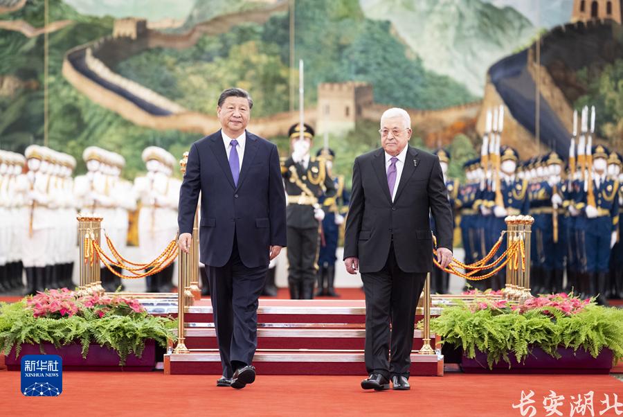 会谈前,习近平在人民大会堂北大厅为阿巴斯举行欢迎仪式。