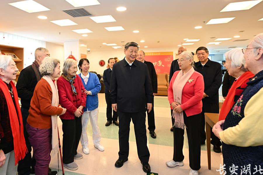 2月9日至10日,中共中央总书记、国家主席、中央军委主席习近平在北京考察并看望慰问基层干部群众。这是10日上午,习近平在西城区“吾老·新街”养老服务街区银龄老年公寓考察时,同老人们亲切交流。新华社记者燕雁摄