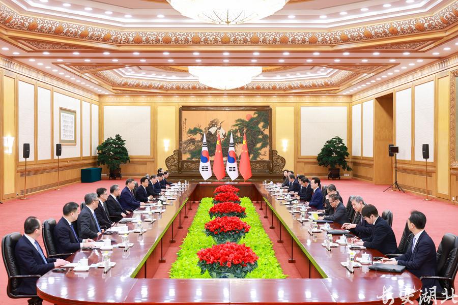 习近平指出,当前世界百年变局加速演进,国际形势更加变乱交织。中韩在维护地区和平、促进全球发展方面肩负重要责任,有广泛利益交集,应当坚定站在历史正确一边,作出正确战略选择。80多年前,中韩两国付出巨大民族牺牲,赢得抗击日本军国主义的胜利。今天更应携手捍卫二战胜利成果,守护东北亚和平稳定。作为经济全球化的受益者,中韩要共同反对保护主义,践行真正的多边主义,为推进平等有序的世界多极化、普惠包容的经济全球化作出贡献。