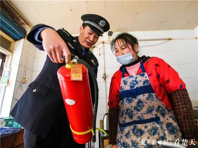 “您看这个灭火器过期了,不能大意啊!”“好的,我们尽快更换。”1月4日上午,宋晓波带队检查新桥社区临街门面,叮嘱店主注意冬季防火。