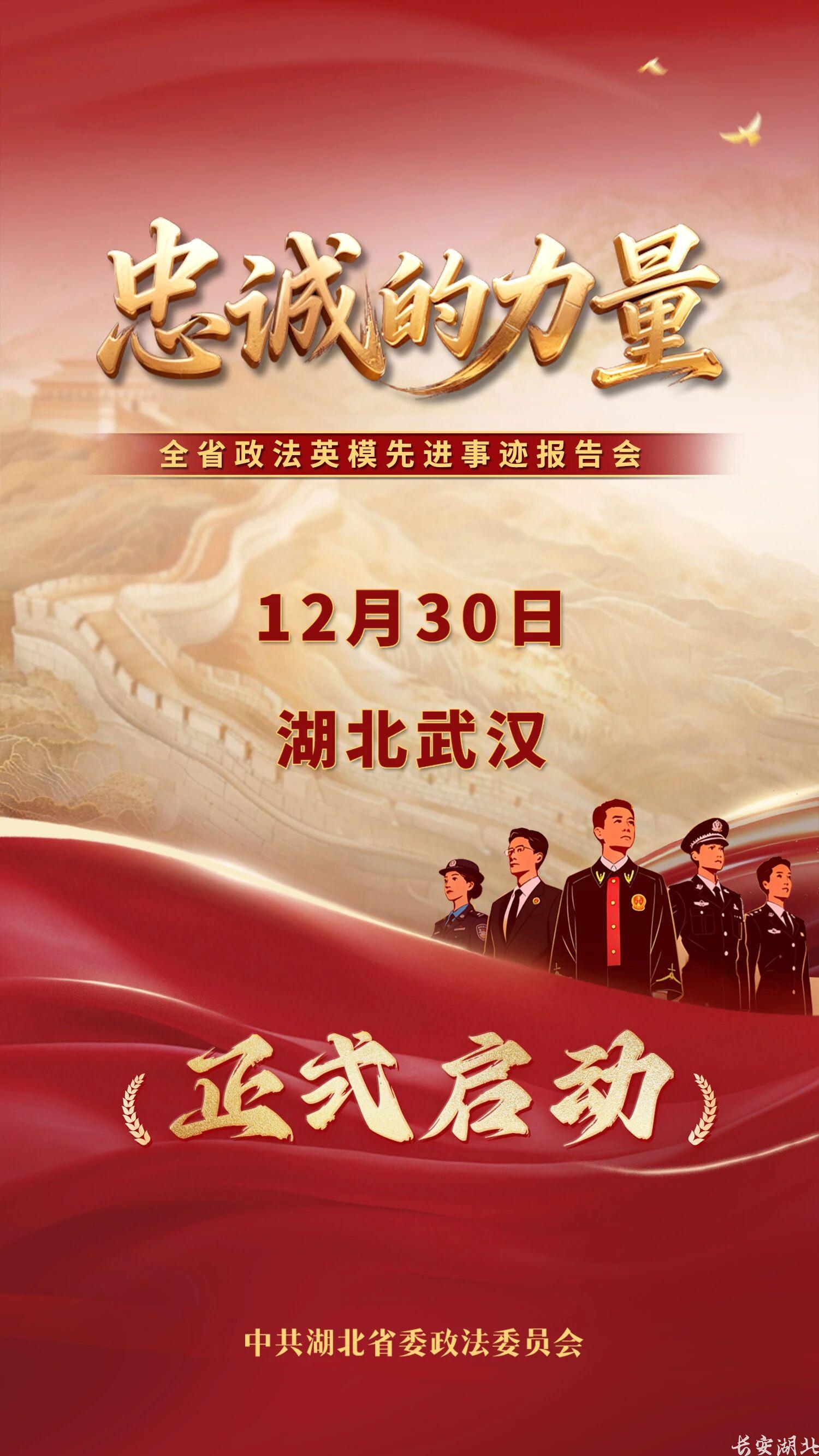 12月30日,“忠诚的力量——2025年全省政法英模先进事迹报告会”将在湖北武汉举行。十位英模如璀璨星辰,闪耀于平安法治湖北建设新征程;他们的故事如涓涓暖流,汇聚成直抵人心的忠诚力量。敬请期待!