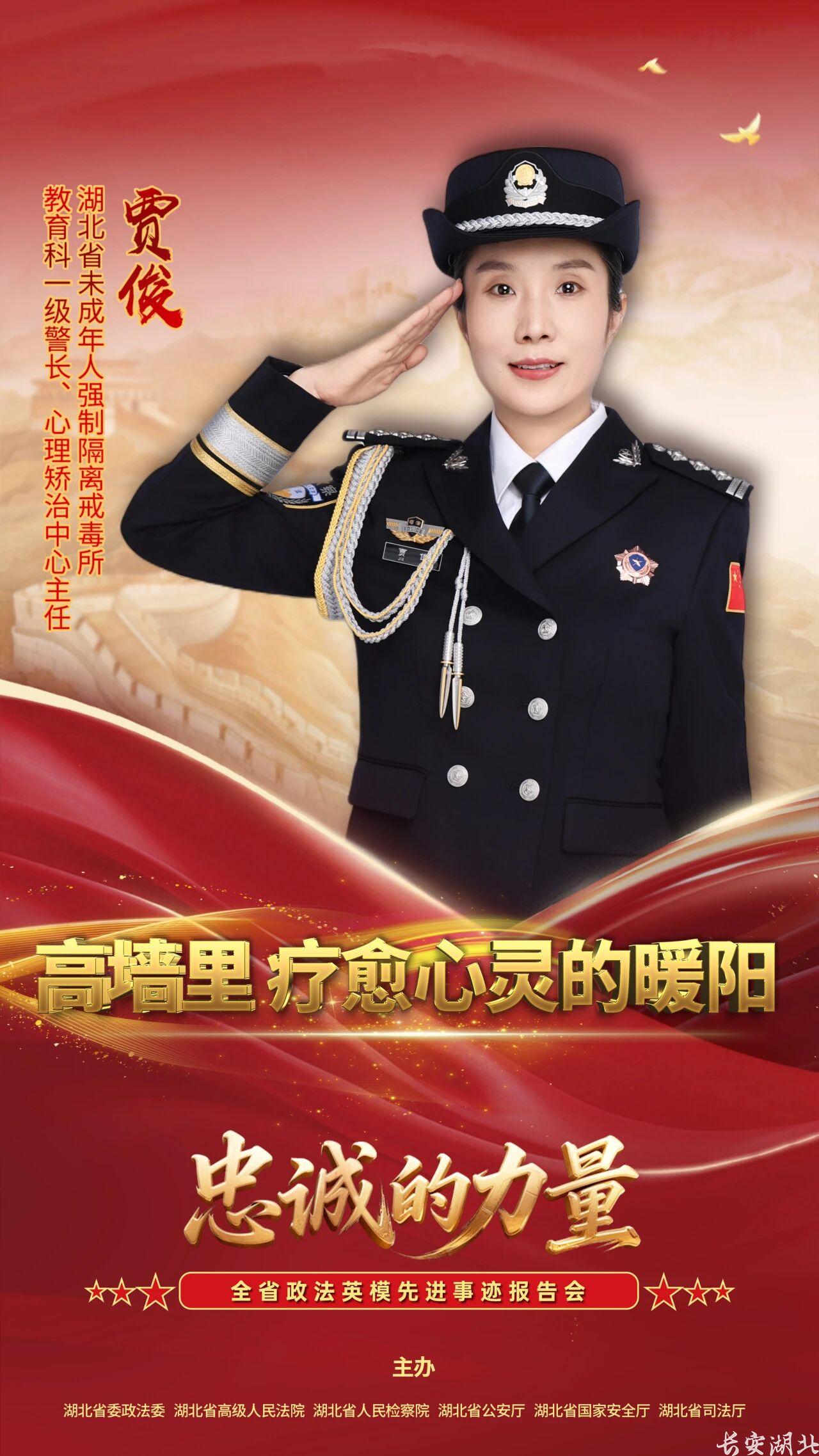 2025年12月30日,“忠诚的力量”——湖北省政法英模先进事迹报告会在武汉举行,湖北省未成年人强制隔离戒毒所教育科一级警长、心理矫治中心主任贾俊现场讲述了她的从警故事。