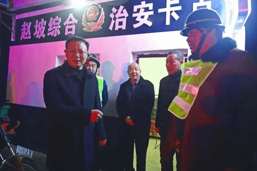 12月28日晚寒风冽冽,警灯闪烁,在程河镇赵坡村的治安卡点上襄州区人民法院党组书记、院长周俊庆叮嘱基层治安值守人员要值好“安全岗”、看好“安全门”。