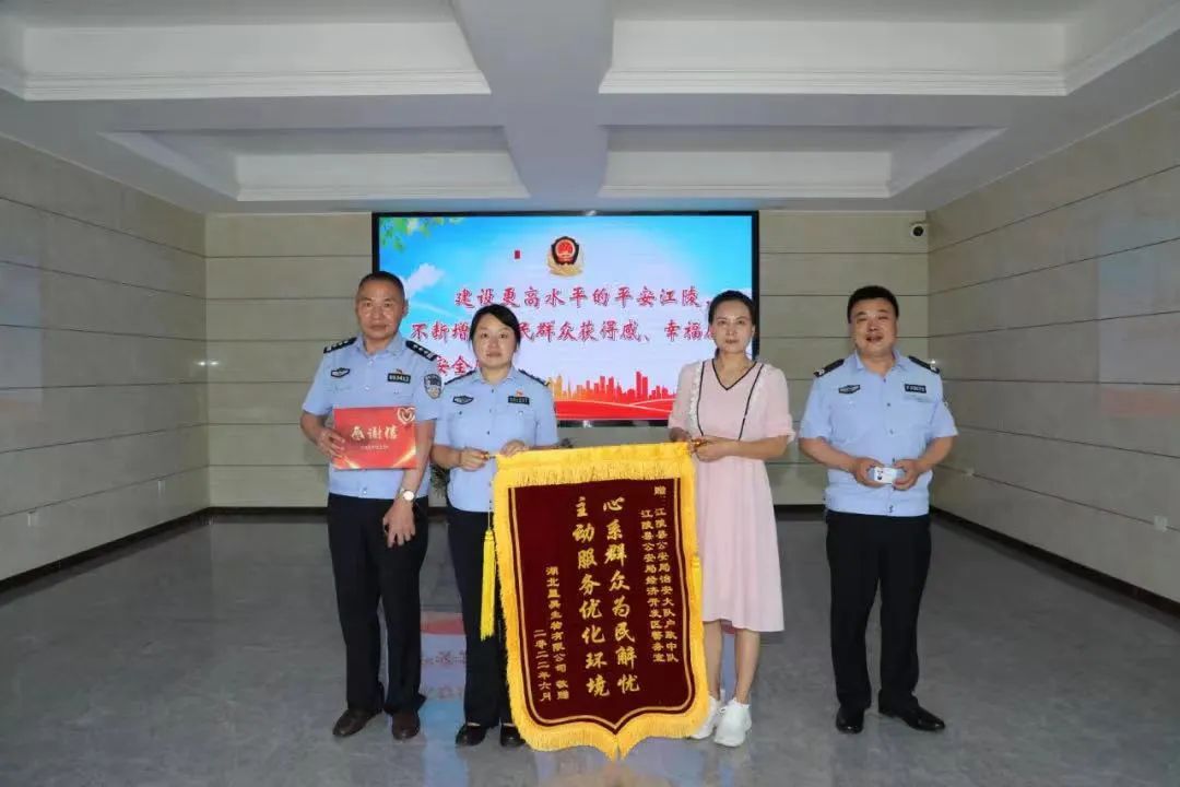 ▲江陵警方为辖区企业员工及其子女开辟“绿色通道”,办理身份证,企业送锦旗致谢