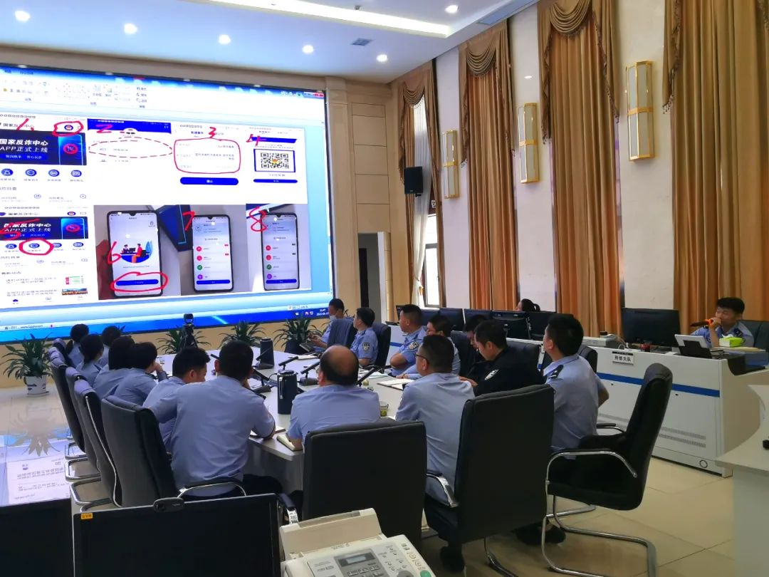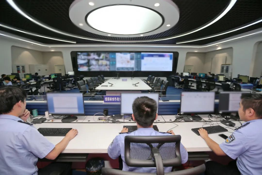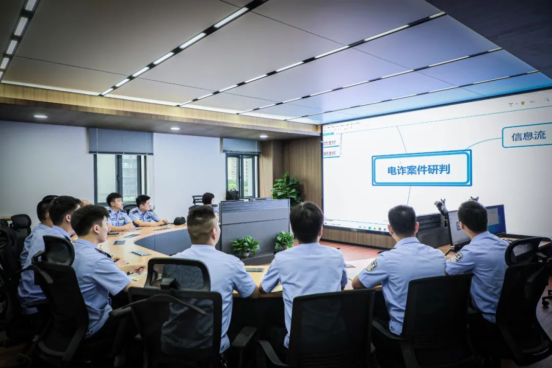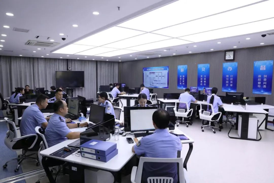▲荆州市公安局一体化作战中心民警正在研判电诈案件