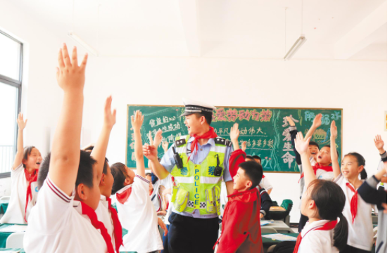 咸宁警方在辖区组织“开学第一课”安全教育。