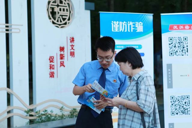 “在未确认真伪的情况下‘不轻信、不透露、不转账’……”“如果发现对方身份、信息可疑及时向司法机关举报……”检察干警耐心地跟群众进行普法宣传。