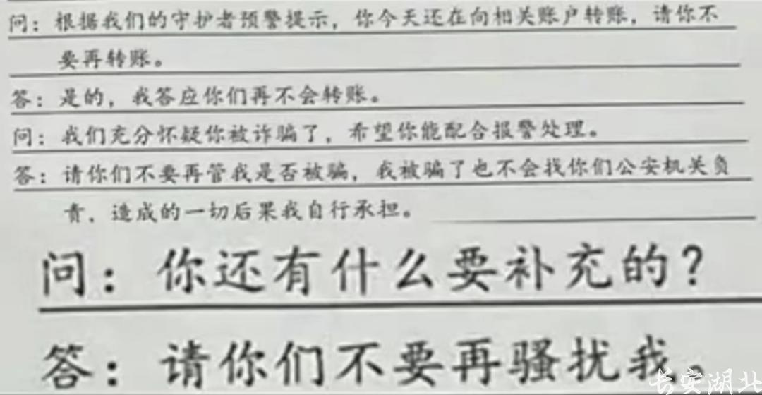 “我确认了,这不是诈骗,我不报警,我没问题,有事我自己承担”…