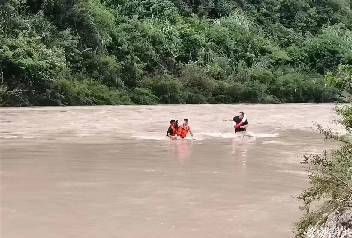 8月13日,湖北省咸丰县一男子涉水前往唐崖河对岸的浅滩钓鱼,停留一段时间后,不料河水突然上涨,男子被湍急河流困在河对岸。危急时刻,咸丰县公安局唐崖派出所民辅警冒险蹚水过河救援,经过近2小时的努力,成功将被困男子救上岸。