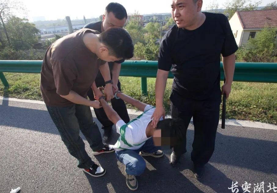 “停车、停车!”15时52分,嫌疑人田某龙试图驾车冲卡,民警紧急驾驶警用车辆将嫌疑车辆别停。滠口街派出所副所长祝福林冲锋在前,第一时间与同事将嫌疑人田某龙控制。