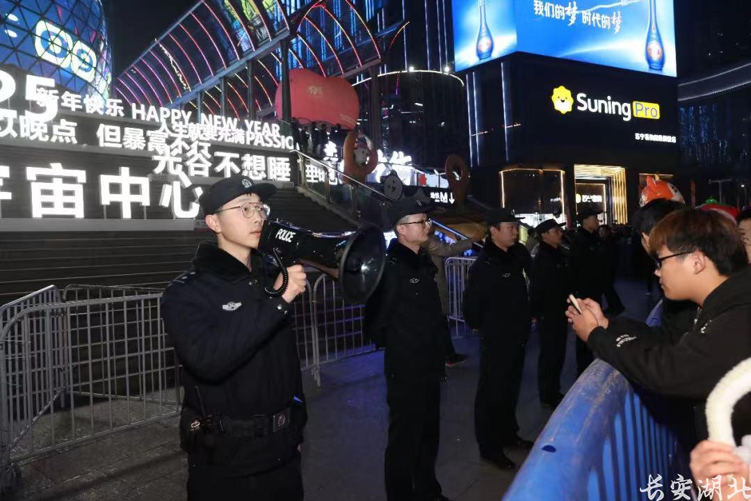 2024年12月31日,武汉警方启动高等级勤务,投入1.4万名警力,统一指挥调度、严密方案体系、把握重点环节、科学精准管控,全力打好“跨年夜”安保开局第一仗。截至目前,全市未发生重大刑事案件、重大交通事故,各大商圈、地标景区秩序井然。