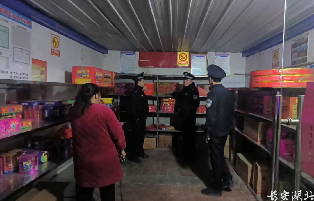 “禁止烟火标识要张贴在醒目位置……”11日晚,鄂城分局碧石渡派出所民警在对辖区烟花爆竹经销商检查时进行安全提示。