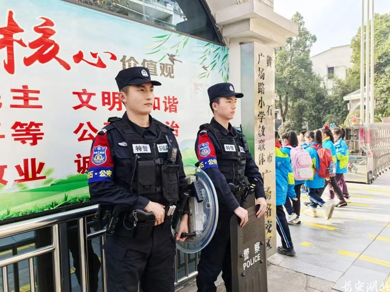巡逻大队辖区6所学校门口都有特警队员的温暖守护。上下学高峰时段,特警队员总会提前到岗,以定人、定岗、定时的坚守筑牢校园安全防线。他们一边耐心引导接送学生的车辆有序停放和通行,化解交通拥堵;一边目光如炬排查周边可疑人员,消除各类安全隐患。每年,这样的护学执勤超过3000次,风雨无阻、从未间断。