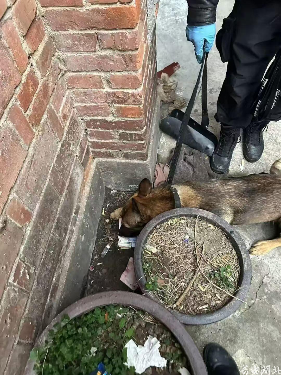 ▲在警犬的协助下,监利警方迅速找到藏匿的涉案钱款。