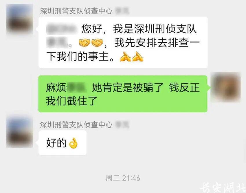 接警后,武汉市公安局洪山区分局卓刀泉派出所民警薛傲立即展开研判。通过资金流向追踪,民警发现先前的7.8万元转账来自广东的黄先生,而他因遭遇电信诈骗已在当地报警。经联系核实,黄先生与来取货的王女士并非“家人”关系。