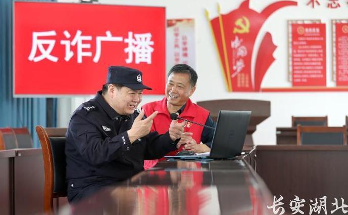 钟祥市公安局驻村工作队民警正通过乡村广播,向村民们宣传反诈技巧。