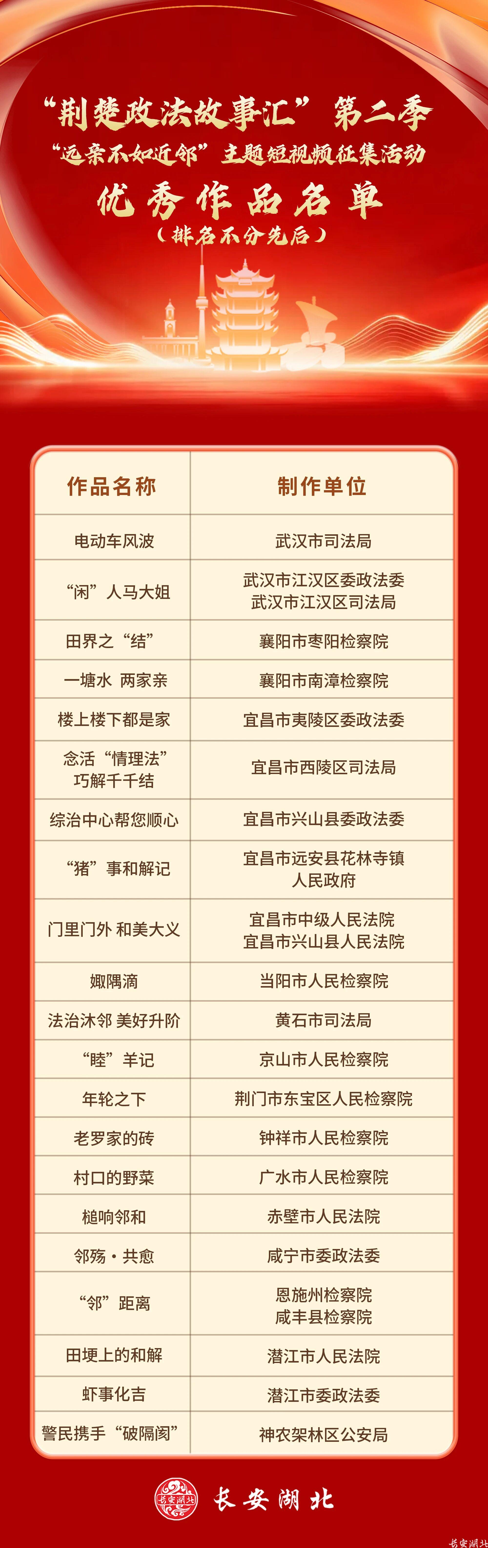 “荆楚政法故事汇”第二季优秀作品名单公布