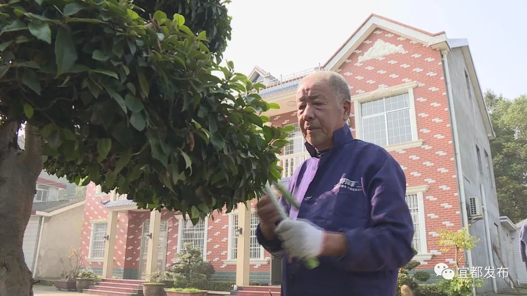在鸡头山村四组,“净美之星”古明洪正在打扫庭院,修剪花草,根据该村对“五美四福”先进典型的奖励政策,他获得8000元的“美丽庭院”以奖代补资金支持后,将自家房前屋后打造成了干净整洁、绿植环绕的美丽庭院。