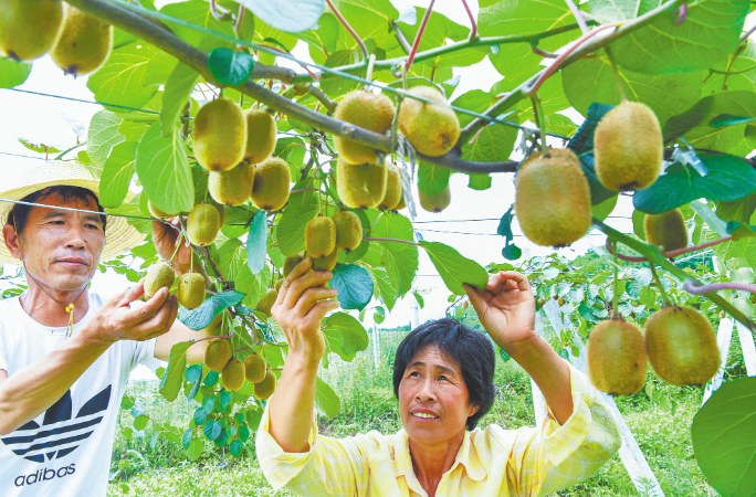 近年来,村里又开始试种猕猴桃。3年以上的猕猴桃园,亩产可达3000多斤,按市价每斤10元计算,就是3万多元,而5年以上的老树,亩产可达6000多斤。