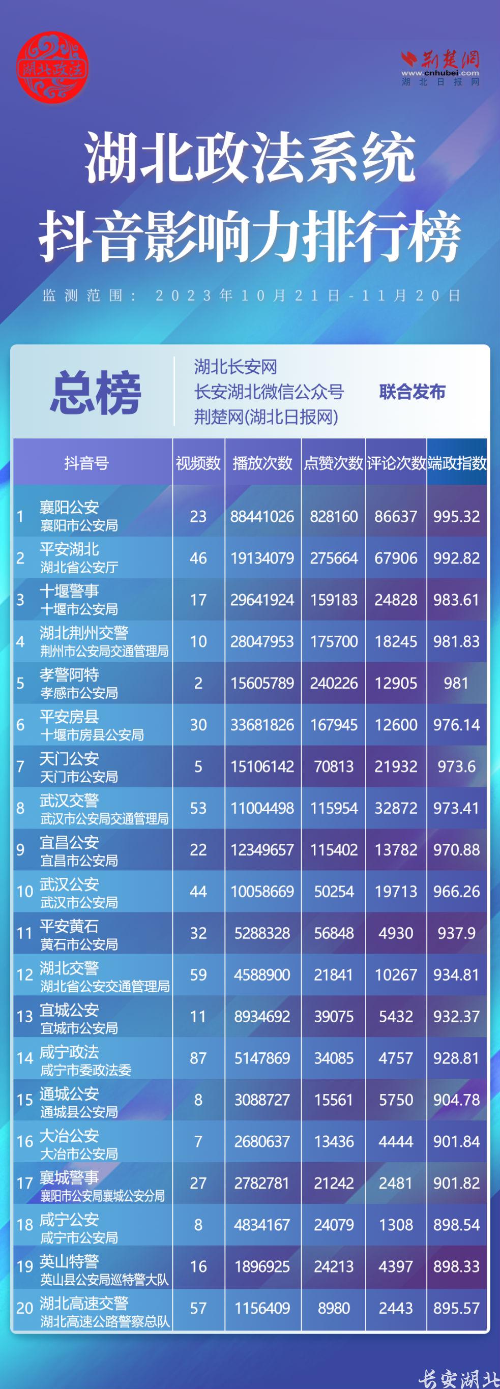 第一名 “湖北交警”(湖北省公安交通管理局)