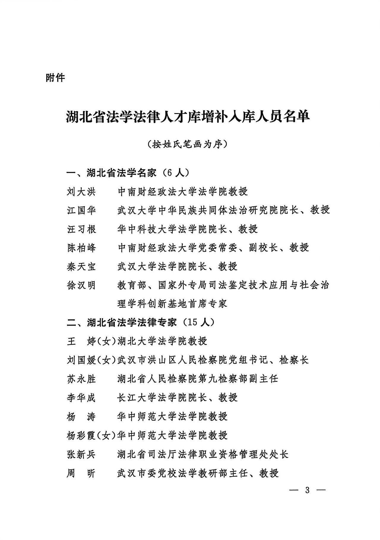 1月13日,湖北省法学会官方微信公众号发布关于增补湖北省法学法律人才库入库人员的通知,具体内容如下:
