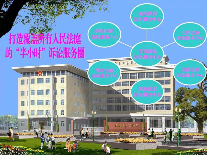 孝感孝昌县法院将诉讼服务网络从1个诉讼服务中心,延伸到5个派出人民法庭和10个巡回审判法庭构建了“一心多点、全域覆盖、联网运行、就近服务”的诉讼服务网络,使当事人可以任意选择距离他30分钟路程内的人民法庭或诉讼服务点办理诉讼事务。从“群众多跑路”到“数据多跑路”,让群众以最短的时间、最低的成本、最快的方式获得更好的司法服务。