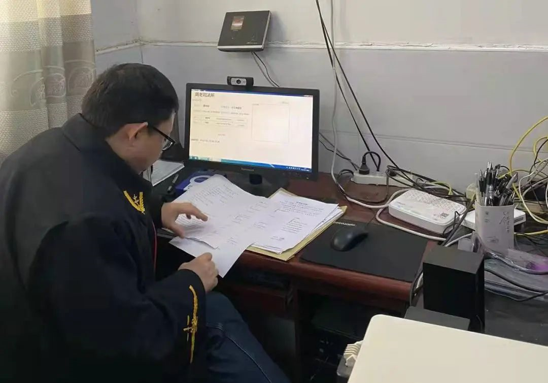 “现在宣布开庭!”庭审当日,审判员陈刚组织双方通过视频连线充分表达各自意见,法官助理和书记员通过记录仪进行全程录音录像,做好庭审记录,整个庭审秩序井然、规范高效。