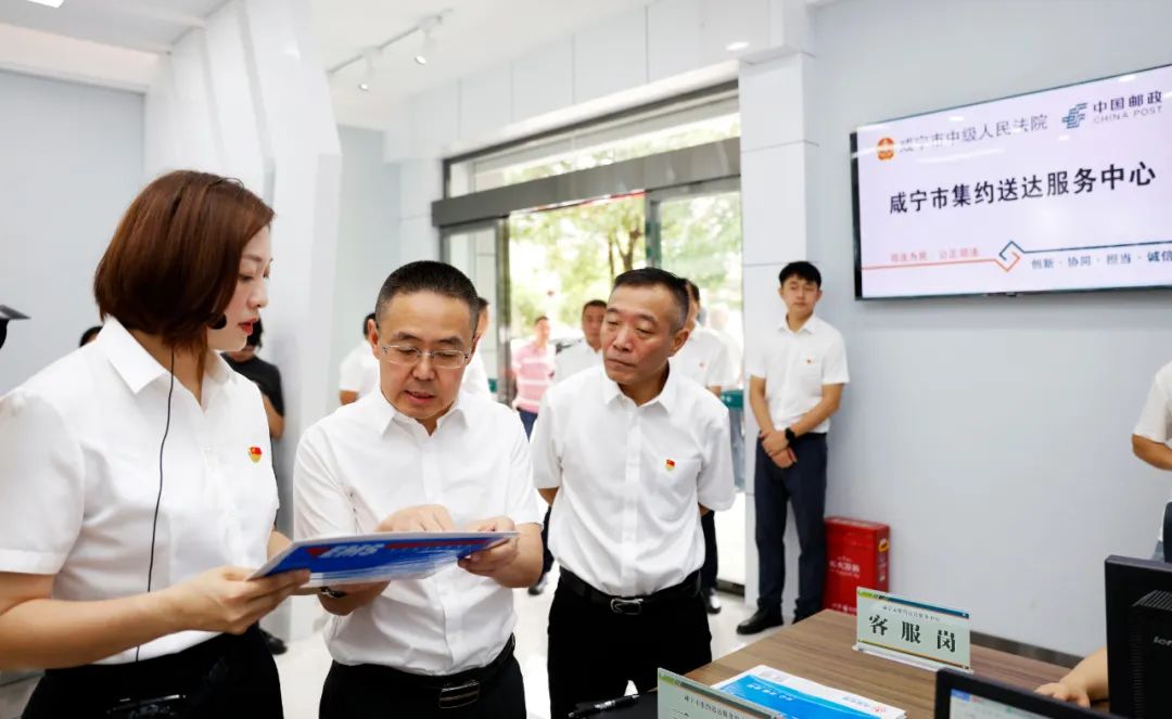 7月21日,咸宁市集约送达服务中心全面升级改造正式亮相,咸宁中院党组书记、院长李文锋现场调研指导工作。