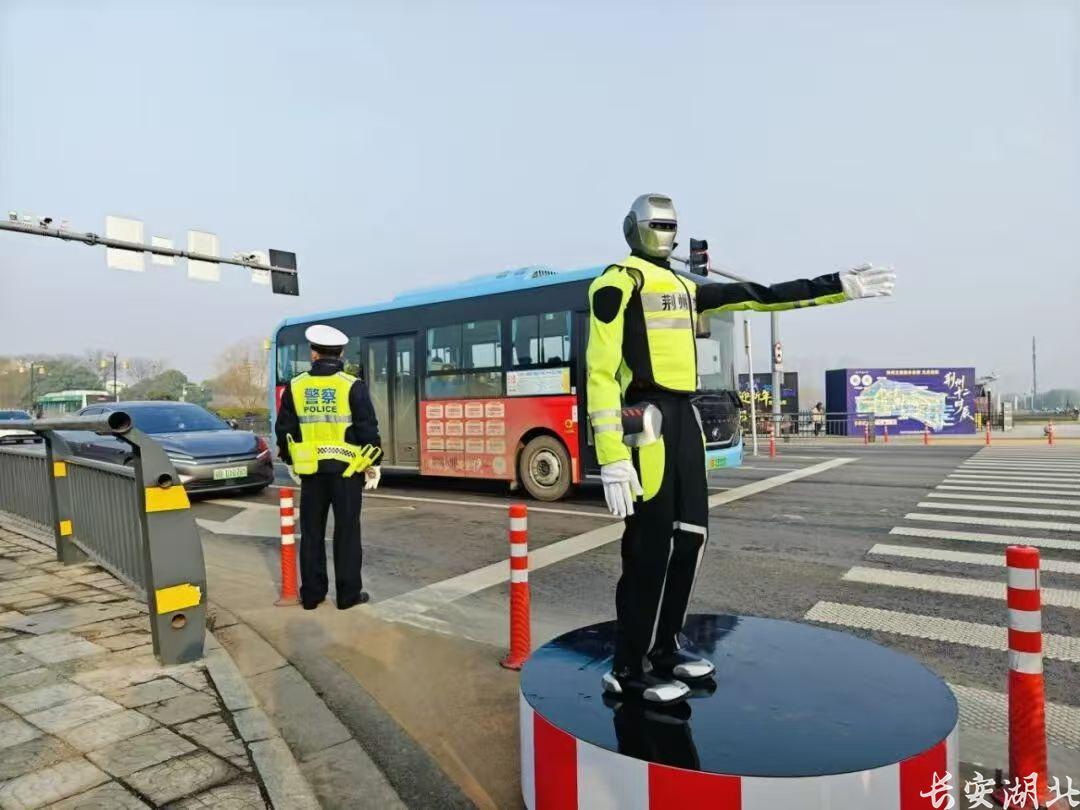 在为期四十天的春运大考中,它们的加入既能协助指挥疏导交通,又能通过规范劝导传递文明出行理念,体现了“服务在先、劝导为主”的智慧执法新模式。从枢纽站内循环往复的温馨提醒,到十字路口精准规范的劝导手势,这位能“走”会“劝”的科技新兵,正成为荆州智慧交通管理的一道亮丽风景。
